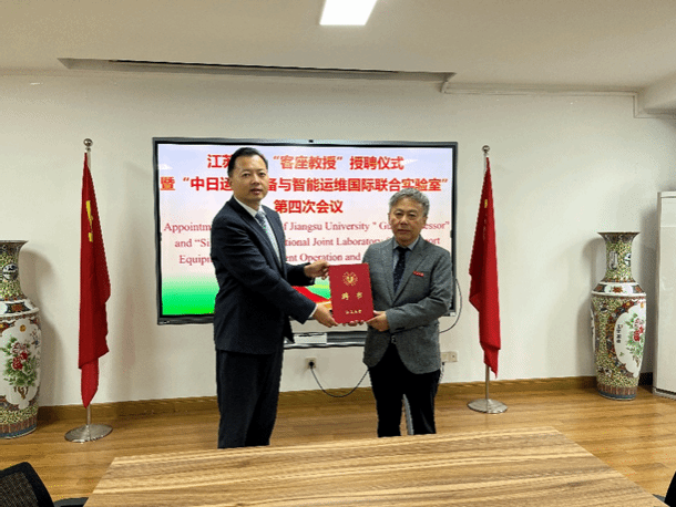 崔勇处长为野口良造颁发聘书并佩戴校徽,随后介绍了江苏大学在办学特色、学科建设与人才培养等方面的基本情况。他表示,期待双方在智能农业机器人、智慧农业装备、智能运维等科研领域开展深层次合作,并在人才培养、学术交流与平台建设等方面进一步协同发力。