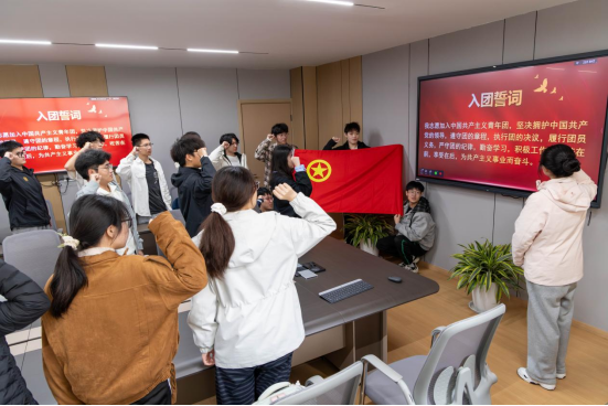 活动在庄重肃穆的重温入团誓词环节中拉开帷幕。全体团员青年面向鲜红的团旗,高举右拳、庄严宣誓,重温入团时的赤诚与坚定,铮铮誓言回荡在会场,进一步凝聚了理想信念,强化了新时代青年“强国有我、护国有我”的使命担当。