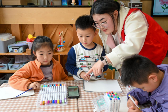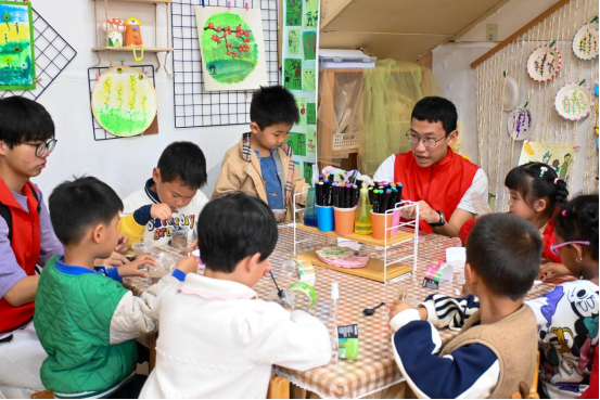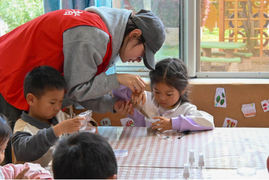创意美术区同样热闹非凡,志愿者们向孩子们介绍“谷雨三朝看牡丹”的民俗,讲解谷雨时节牡丹盛开的美景。活动提供手指点画、棉签画、拓印画等多种创作形式,孩子们自主选择喜欢的方式,用鲜艳的色彩勾勒牡丹的娇艳,用灵动的笔触描绘春日的生机。志愿者们在旁轻声引导、耐心协助,尊重每一个孩子的个性化创意,让孩子们在艺术创作中,感受谷雨习俗的魅力,锻炼创意表达与动手能力。