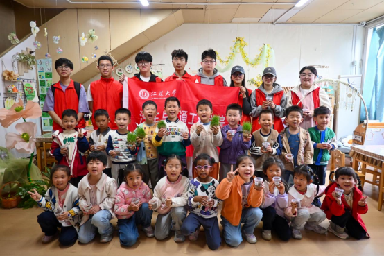 活动尾声,孩子们手持亲手制作的播种小盆栽,与大学生志愿者们并肩而立,定格下温馨美好的瞬间。一张张稚嫩的笑脸、一盆盆承载希望的小盆栽,都是本次活动最珍贵的收获。