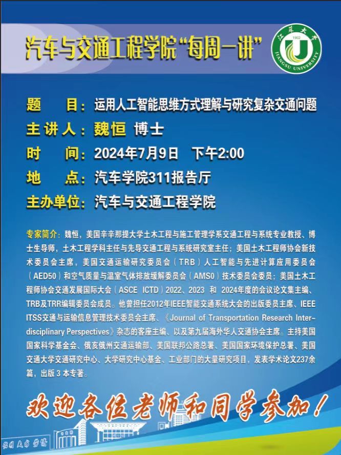 【每周一讲】运用人工智能思维方式理解与研究复杂交通问题