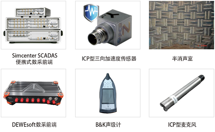 硬件:德国HEAD acoustics多通道数采前端、DEWEsoft数采前端、德国Simcenter SCADA便携式数采前端、美国PCB公司单/三轴ICP型加速度传感器以及麦克风传感器、德国B&K声级计、日本Keyence光电转速传感器。