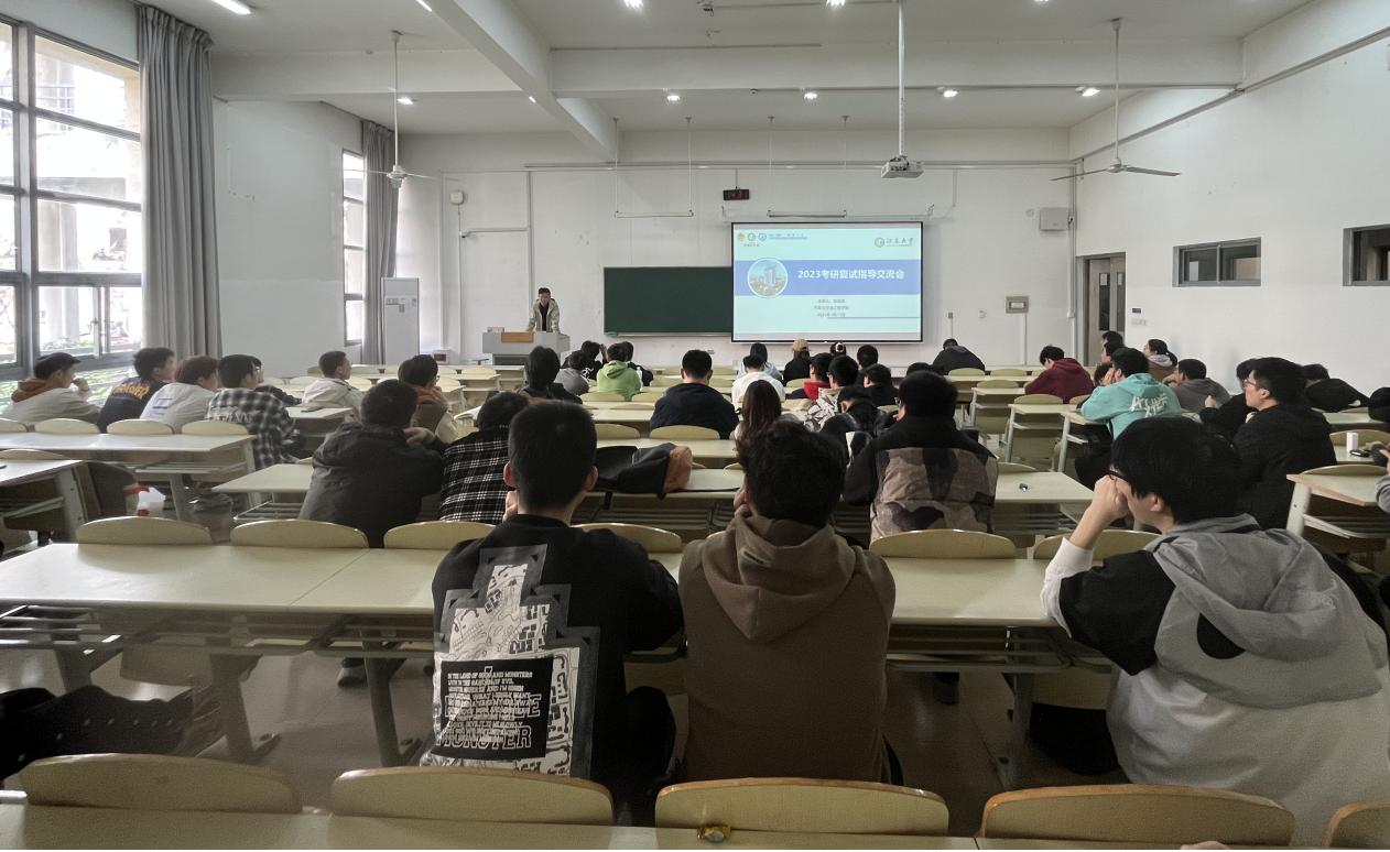 为精准助力考研学子备考,提升学生考研成功率,3月15日,汽车学院学生考研互助学习社在京江楼2108举办2023考研复试指导交流会。本次交流会由辅导员刘波涛主讲,100余名2019级学生参加。