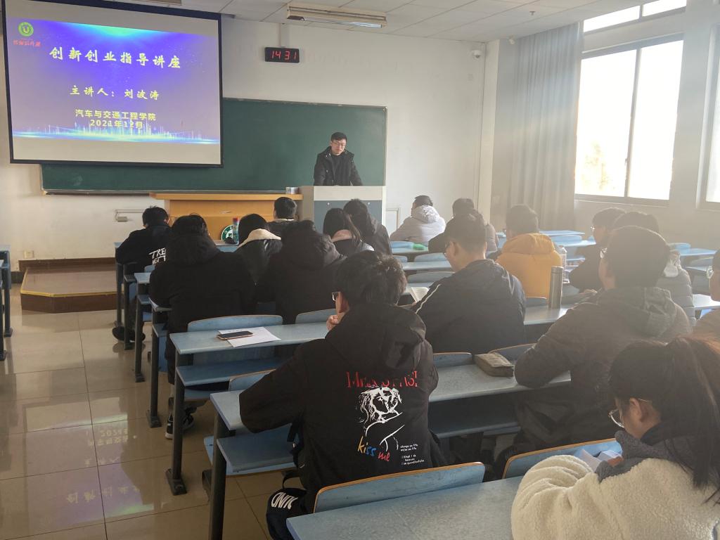 12月3日,汽车学院在三江楼504举办创新创业交流会,本次讲座由辅导员刘波涛主讲,近100名学生参加。