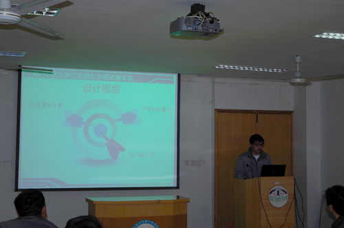 会议首先由悬架组代表发言,发言总结了过去悬架设计的问题并提出了解决方案、介绍了设计思路、当前进度以及下阶段工作。王院长提出悬架设计在总设计中起关键作用,必须做出特色。接下来发言的是转向组,发言总结了上届比赛的经验,提出了本届的设计目标并对设计细节进行了介绍。发言结束后,老师和队员们针对转向器的选择展开了讨论,最后老师提出了转向器标准化发展的思路。接着制动组、电控组、车架组、进排气组、散热组、换档组、传动组以及车身组分别进行了汇报,老师们也针对设计中的问题进行了悉心指导。王院长最后总结说车队成员不可滥竽充数,赛车设计要有特色,不求全面超越,但力求能在单项上有所突破,“我们每个人都没有义务做这件事,大家凭着热情工作,没有热情请撤出车队”。