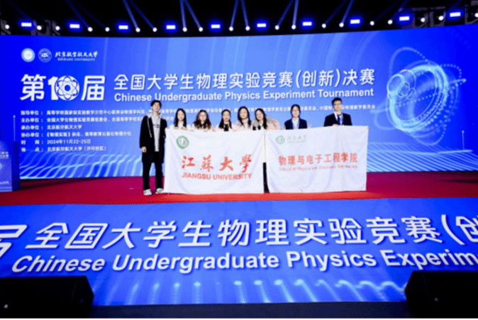 On November 24th, the Jiangsu University team, comprising Deng Xue and Wu Keying from the School of Automotive Engineering and Tian Hongchang from the School of Physics and Electronic Engineering, under the meticulous guidance of instructors Yin Hongfei and Xie Yue'e, stood out in the Finals of the National College Students' Physics Experiment Competition (Innovation) with their project "Holography," securing the first place in Group 1 and winning the National First Prize.