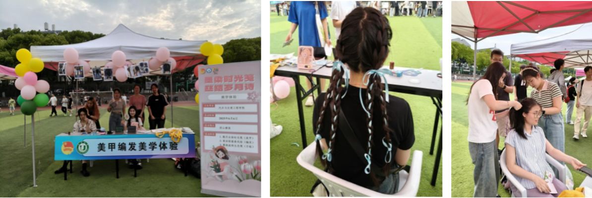 To create a warm and memorable graduation atmosphere and enrich campus cultural life, the School of Automotive Engineering organized the aesthetic experience event themed “Weaving Youth, Painting Dreams, and Setting Sail” on June 6 at the Xishan Sports Field. Centered on creative handicrafts, the event featured two themed zones—braiding and hairstyling, and canvas tote-bag painting—attracting enthusiastic participation from students across different year levels as well as international students, with a lively and harmonious atmosphere throughout.