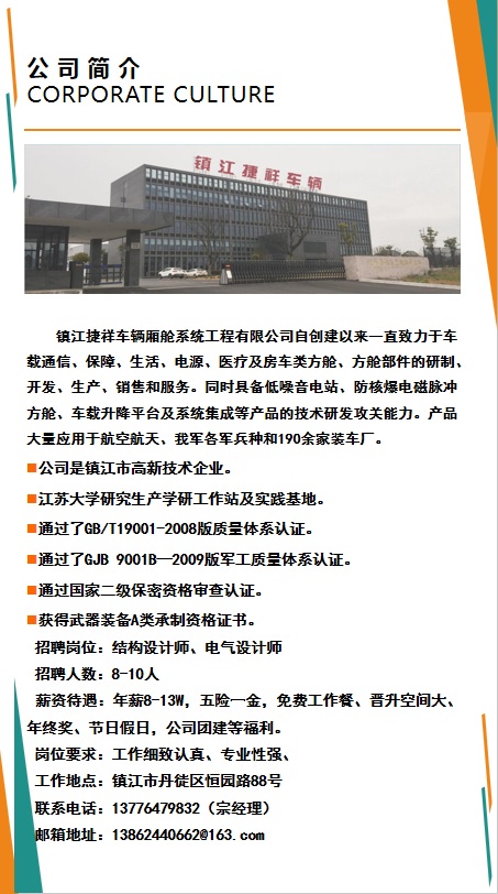 镇江捷祥车辆厢舱系统工程有限公司2024招聘信息