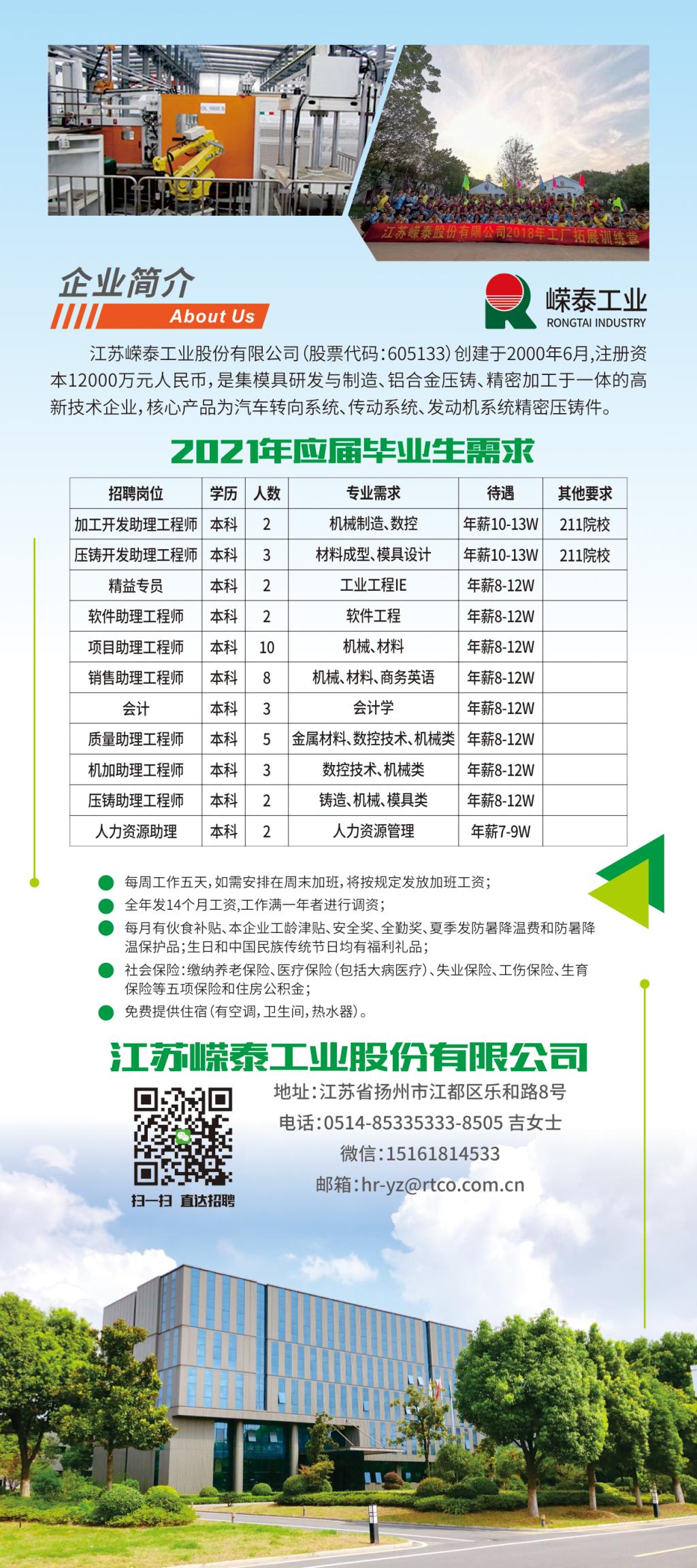 江苏嵘泰工业股份有限公司2021年春招聘简章