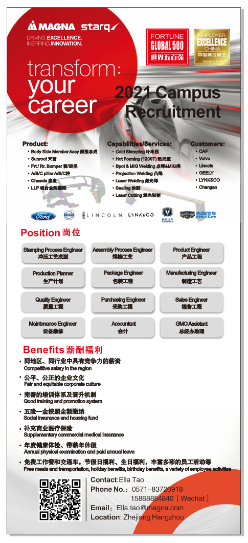 卡斯马星乔瑞汽车系统(杭州)有限公司招聘简章