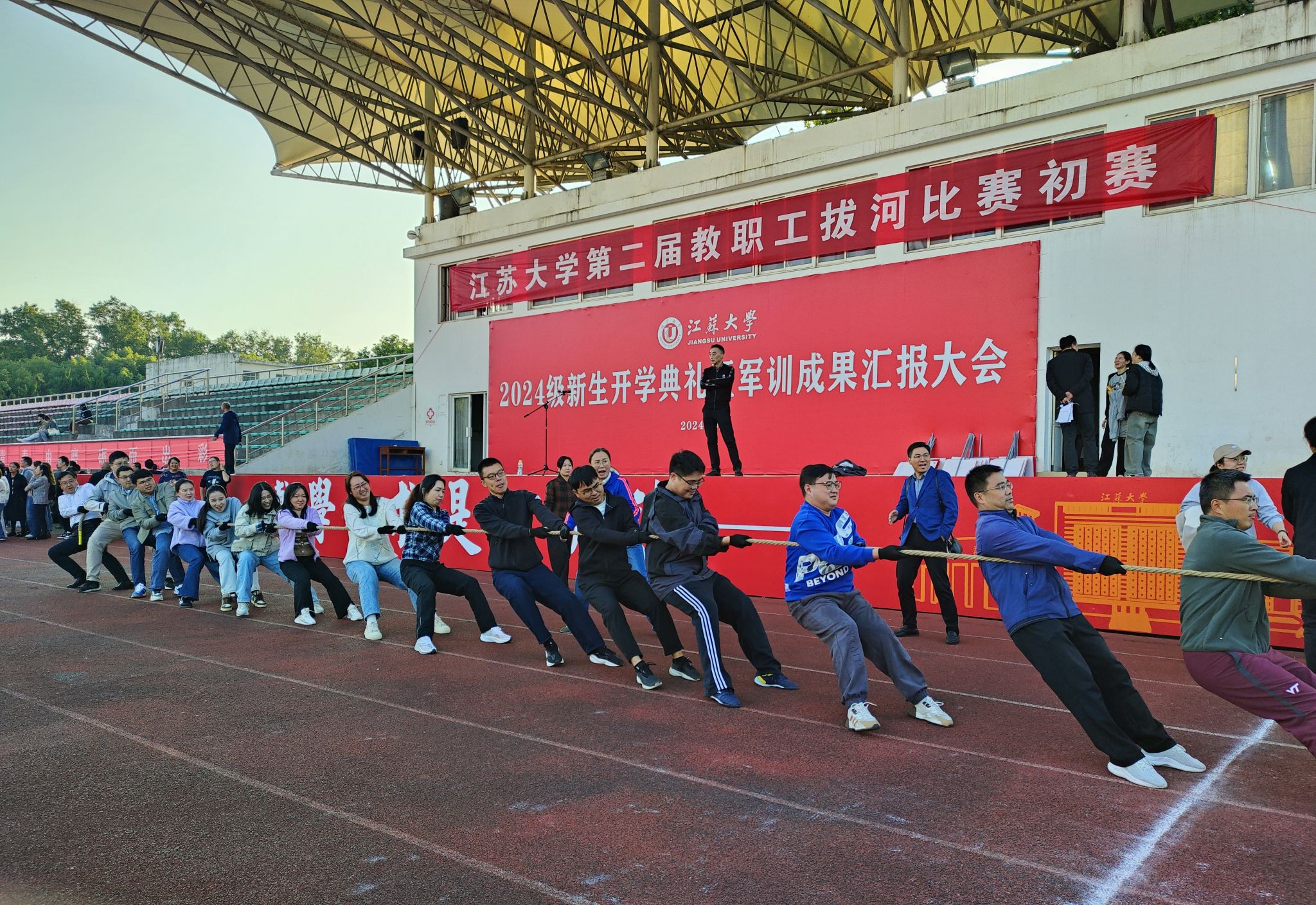 2024年10月23日,江苏大学运动会拔河比赛在学校的操场上如期举行。此次拔河比赛汇聚了全校各个学院的教师团队,汽车与交通工程学院的教师们也积极参与其中,共同为这场体育盛事贡献了自己的力量。