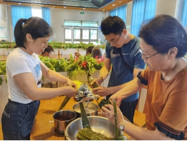 端午节,是中国传统节日之一。包粽与食粽是端午节的礼俗之一 ,自古传承,至今不辍。为了让大家深入了解传统节日、喜爱传统节日、传承文化习俗,增进广大师生的凝聚力,激发工作和学习热情,汽车与交通工程学院于6月11日下午以“粽子飘香,端午情深”为主题在留学生餐厅举行师生“粽”动员活动。本次活动特邀了学院关工委常务副主任王若平教授参加,分工会主席葛慧敏主持活动。