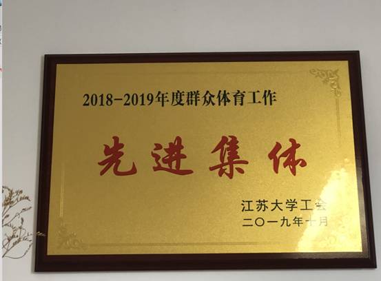 在学校对各分工会组织会员参加校群众体育活动情况的考评中,汽车学院荣获“江苏大学2018-2019年度群众体育工作先进集体”称号。
