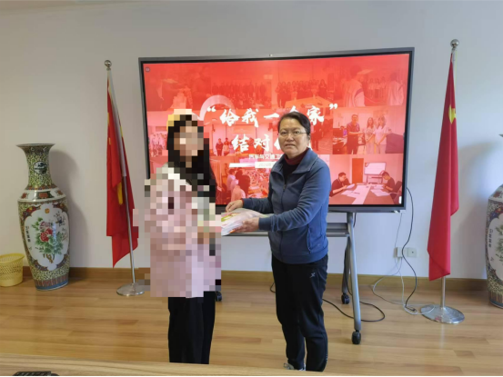 仪式上,王老师为孙同学送上了由校关工委提供的文具和学院提供的暖心大礼包。