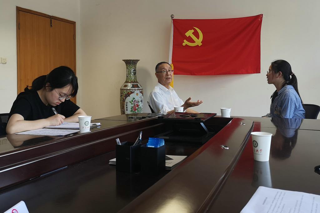 5月22日下午,汽车学院邀请关工委老教师张孝祖在汽车楼310会议室,同青年大学生开展“我和我的祖国”主题专访活动。
