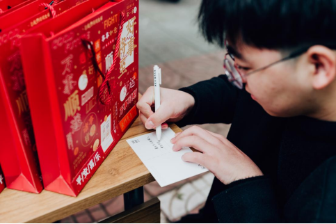活动现场,温情如潮,暖意融融。考研学子们在志愿者的引领下,在一‘研’为定签名板上留下了自己的姓名,互赠考研祝福明信片,留下对自我未来的期许,或是对同学的真挚祝福。