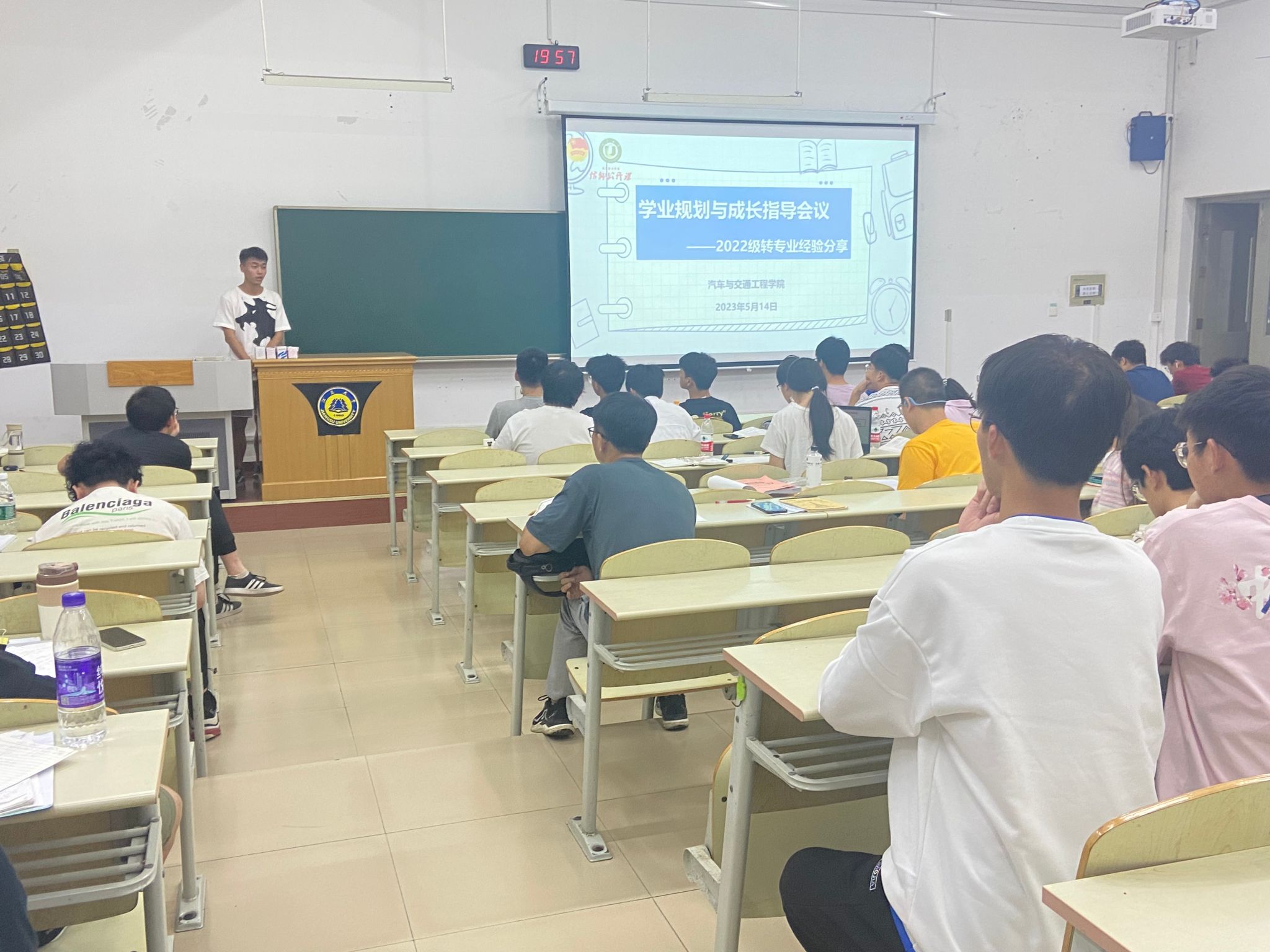 5月14日,汽车学院在京江楼2102举办学业规划与成长指导会议——2022级转专业经验分享,本次活动由辅导员刘波涛主持,40余名有意向转专业的同学参加活动。