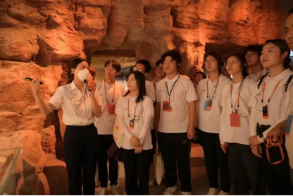 延安位于黄河流域,团队成员在延安文艺纪念馆广场前合唱《黄河大合唱》,激昂旋律中,冼星海先生的音乐精神与延安文艺的灿烂光辉交相辉映,成员们深切体悟到歌声里中国人民不屈不挠的精神力量。