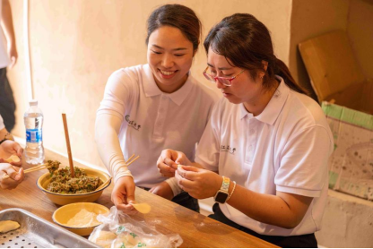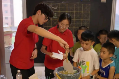 “平整地摊开饺子皮,放上适量的馅,用食指沾水在皮的周围抹一下,将饺子皮对折成半圆形,轻轻按压边缘,一個饺子就包好啦!”大家在自己动手的过程中体会劳动的苦乐,真正懂得一餐一饭的来之不易。