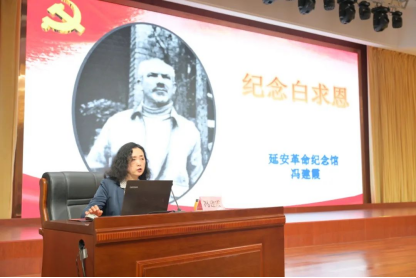 延安革命纪念馆冯建霞讲师为团队成员进行了现场专题教学。在课程中,团队成员深入了解了白求恩同志从加拿大远赴而来,不顾个人安危,只为救死扶伤的一生,深刻领会了他毫不利己、专门利人、精益求精的精神。