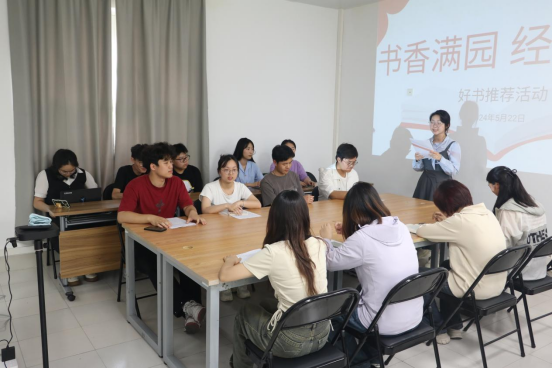 为培养学生良好的阅读习惯和人文素养,推进我校全民阅读,以文化人,助力书香社区建设,形成爱读书、读好书、善读书,学理论、读经典、促实干的浓厚氛围,5月22日,汽车学院联合求知书院举办“书香满园,经典诵读”好书推荐活动。