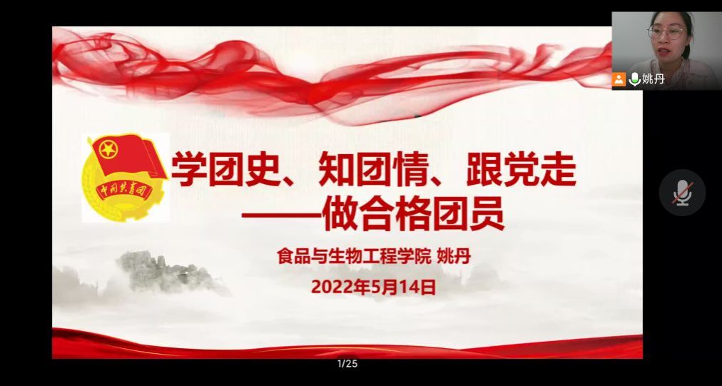为了充分发挥团组织教育青年的功能,进一步加大力度培养高素质人才,5月14日,由校团委主办,汽车与交通工程学院、外国语学院、食品与生物工程学院、化学化工学院、艺术学院和教师教育学院承办的第76期团校第6讲“团史教育”主题团课线上开讲。团课由食品与生物工程学院团委书记姚丹主持,各个学院全体团支书,部分团学组织学生骨干参加团课。