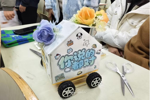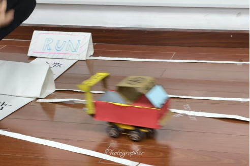 比赛一开始,同学们的小车便疾驰而出,向着终点奋勇奔赴。赛程中途,各小队成员凝心聚力、默契协作,一边稳稳操控小车运载小球,一边保持车身平稳、不偏不晃,以团结之力向着胜利稳步前行。