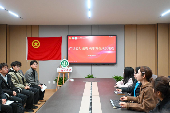 活动伊始,全体人员齐声高唱中国共产主义青年团团歌,在激昂的旋律中进一步强化了身份认同,凝聚了荣誉感与使命感。为进一步强化警示教育效果,全体人员集中观看了违法违纪警示教育视频。真实鲜活的案例与触目惊心的后果,引发了在场同学的深刻反思与热烈讨论,使大家直观感受到严守纪律的重要性和违纪行为的严重危害。随后,陈佳楠老师围绕《中国共产主义青年团纪律处分条例(试行)》作专题宣讲。宣讲采用“典型案例剖析+条款精准解读”相结合的模式,系统阐述了团纪的核心要义与具体规定,将抽象条文转化为生动警示,深刻揭示了各类违纪行为的本质与后果,有效引导团员青年精准把握纪律红线,明确行为边界,切实做到知敬畏、存戒惧、守底线。
