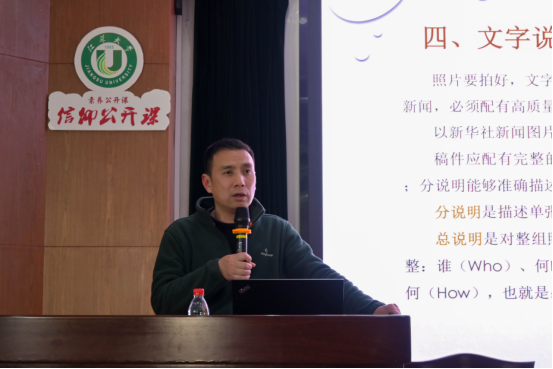 讲坛中,杨雨老师还通过大量江苏大学校园实拍案例,生动展示了如何利用后期裁剪进行二次构图、如何借助背景与道具丰富画面信息、如何通过画面中的人物“颜值”和动作提升照片吸引力。例如,在展览类活动中借助观众的反应展现作品吸引力,在合影中融入主题背景和前景细节,赋予静态画面以新闻性。