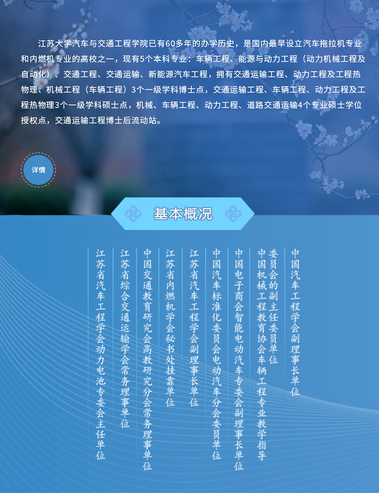 博业体育(China)官方网站已有60多年的办学历史,是国内最早设立汽车拖拉机专业和内燃机专业的高校之一,现有5个本科专业:车辆工程、能源与动力工程(动力机械工程及自动化)、交通工程、交通运输、新能源汽车工程,拥有交通运输工程、动力工程及工程热物理、机械工程(车辆工程)3个一级学科博士点,交通运输工程、车辆工程、动力工程及工程热物理3个一级学科硕士点,机械、车辆工程、动力工程、道路交通运输4个专业硕士学位授权点,交通运输工程博士后流动站。